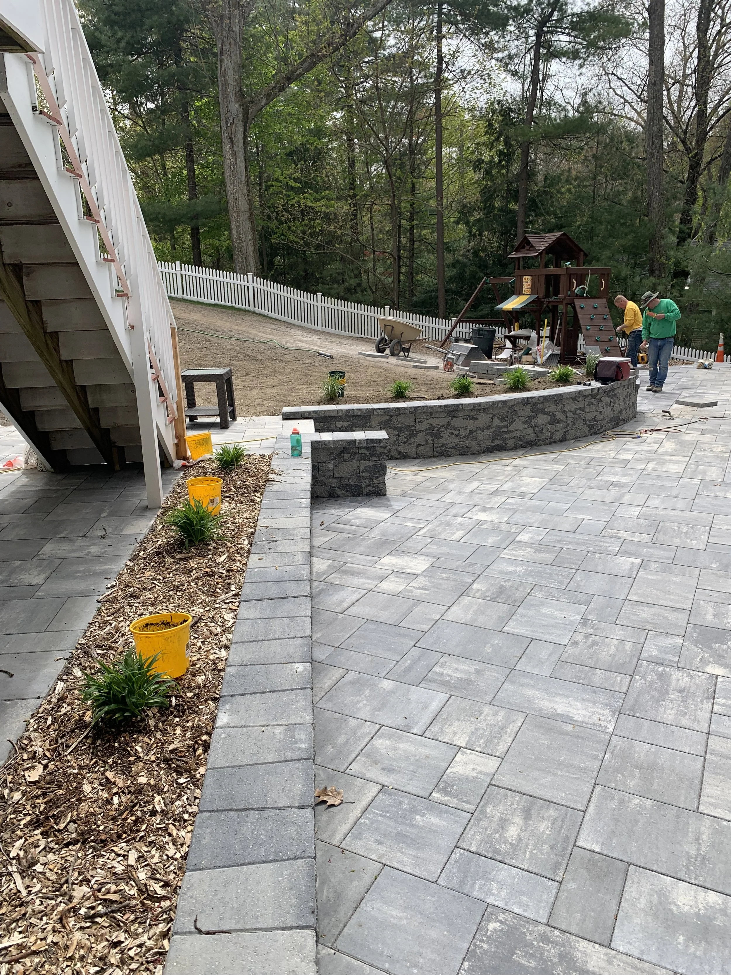 retaining walls and steps.